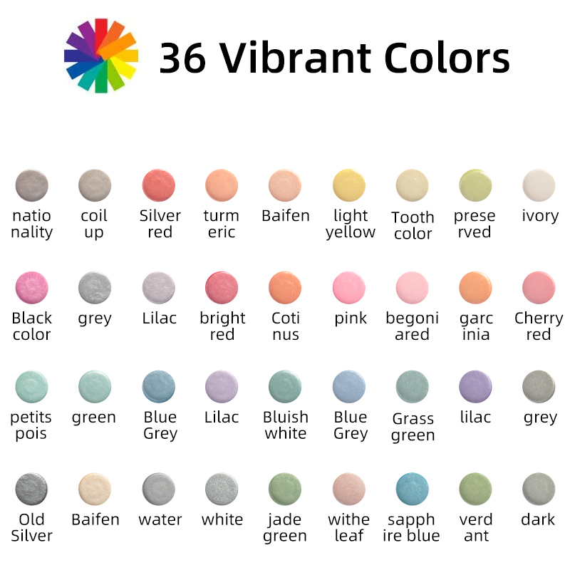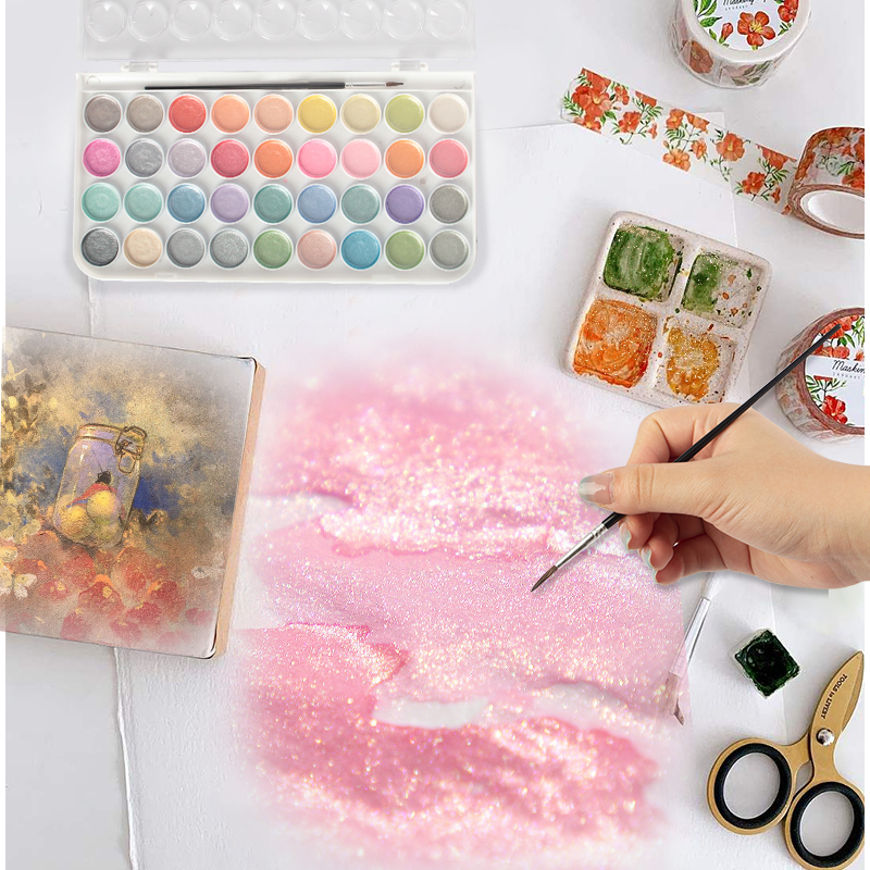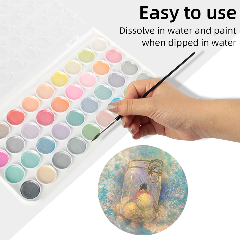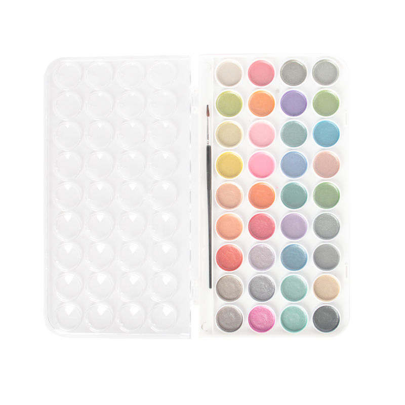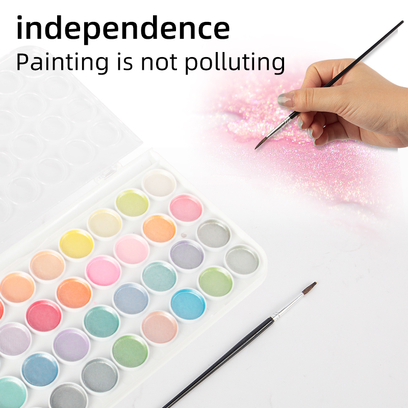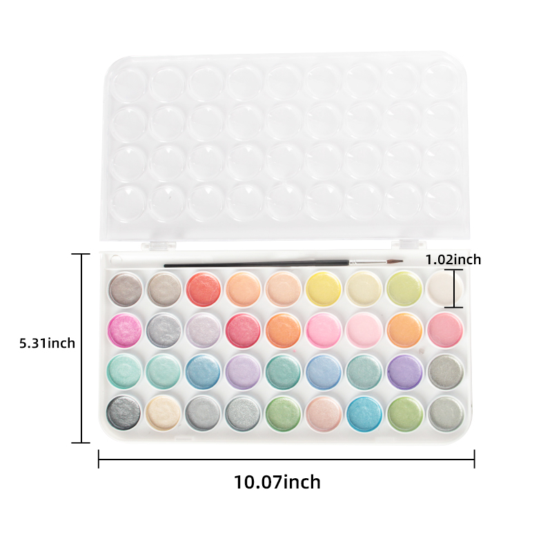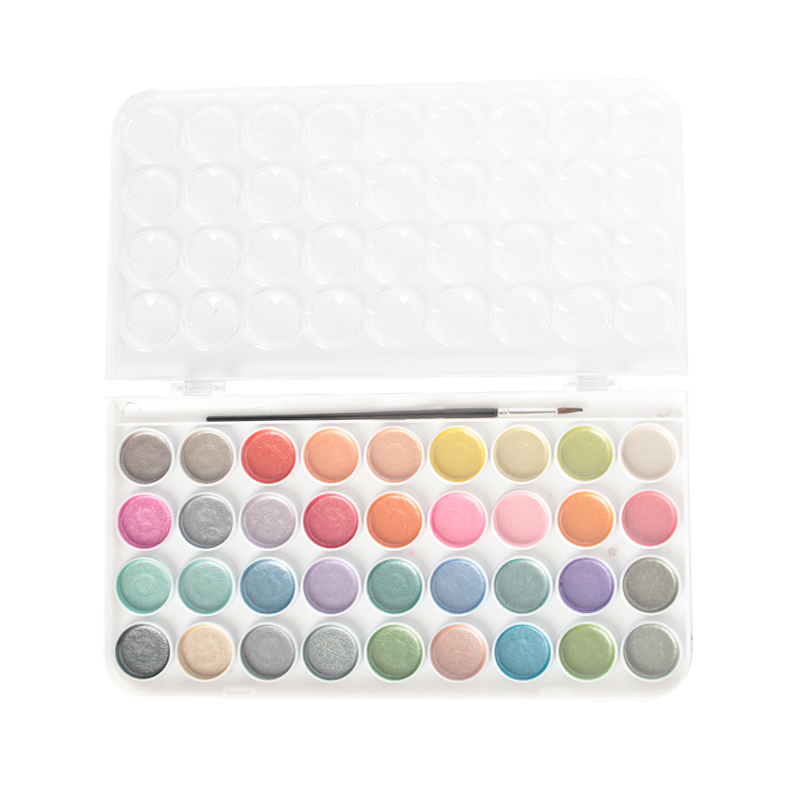 Profesyonel üretici olarak size 36 renkli metalik suluboya Seti sunmak istiyoruz. Bu suluboya boya seti yeni başlayanlar, resim tutkunları ve sanatçılar için uygundur ve çok çeşitli sanatsal olanakları keşfetmenize olanak tanır. Yüksek şeffaflığıyla resim kağıdınızda doğal bir çiçeklenme yaratır. 36 Renk Suluboya Resim Seti'nin her rengine parıltılı bir efekt verilerek, bu suluboya setinde eserlerinizin parıldamasına olanak sağlanır.