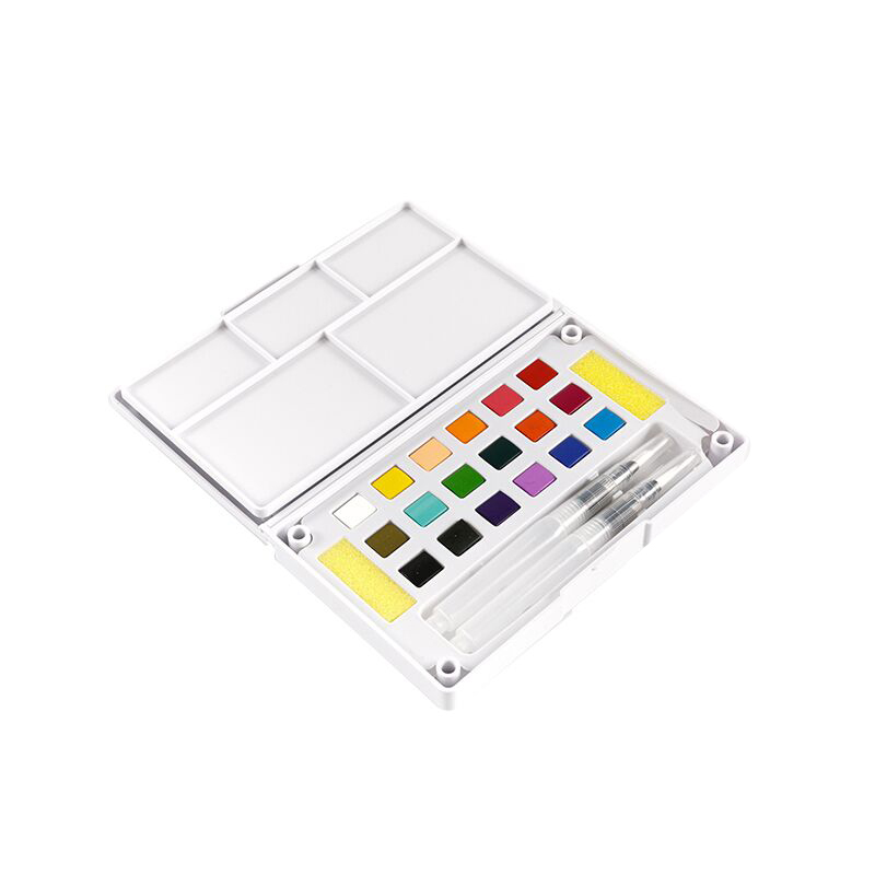 Bu, yüksek kaliteli bir suluboya seyahat kitidir. Sulu boyada yaratıcılığınızı keşfetmeniz için ihtiyaç duyacağınız en yaygın 18 renk ve fırçayı içerir! Kit, kolay karıştırma için taşınabilir bir paletin yanı sıra, daha hassas renk alanları oluşturmak ve ana hatları çizmek için bir sanatçının fırça kalemi ile birlikte gelir. Ve tabii ki, boyanıza batırmak ve palet üzerinde karıştırmak için iki boya fırçası var.
